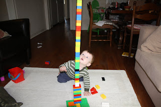 Ian is developing so much these days. Standing a lot, almost 7 teeth, and just continuing to grow - approx 83 cm now (32.7 inches)! Only 3 months until his ONE year birthday! Can't believe it!